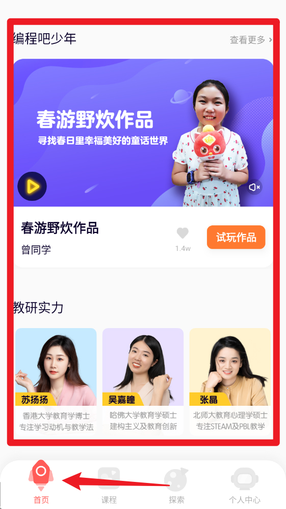 3、在首页可以浏览推荐的课程与活动,查看教研团队实力,选择心仪的课程进行学习。
