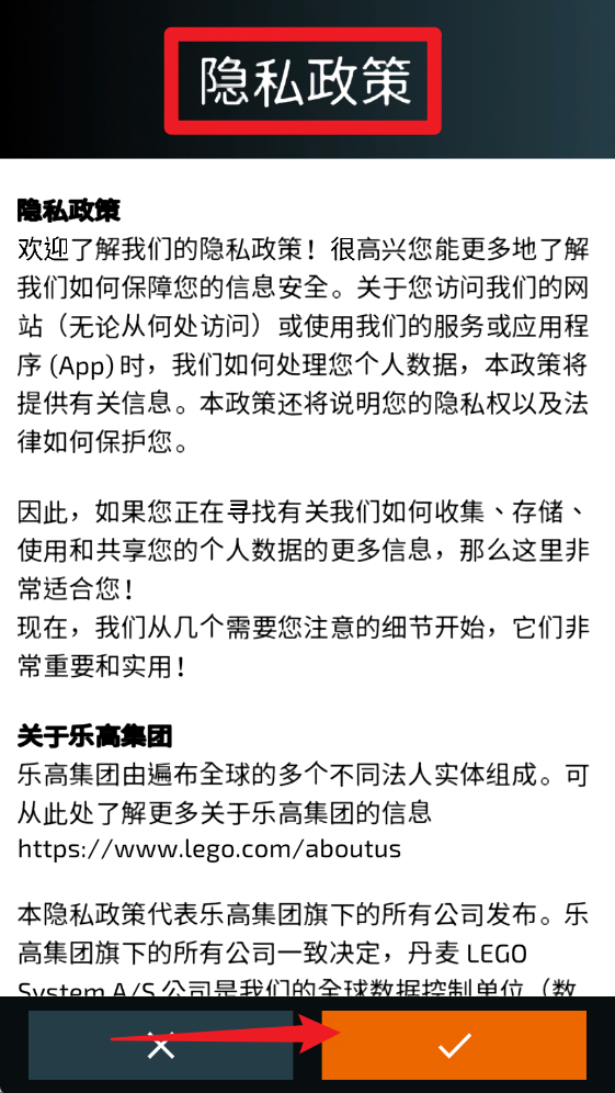 1、首次进入乐高机械组增强现实App时,需阅读并同意《隐私政策》,保障您的信息安全。