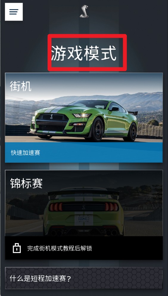 2、点击开始按钮进入游戏,体验短程加速赛等赛车挑战。