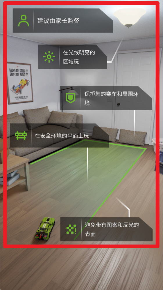 1、 AR实景:通过增强现实技术呈现乐高赛车虚拟赛道场景。