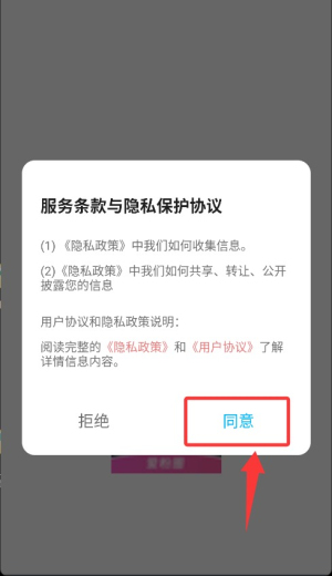 1、初次启动应用时,需阅读并同意用户服务协议及隐私条款,点击确认后进入主界面。