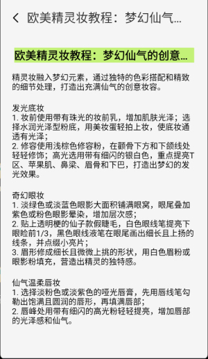 4、在教程页面可查看详细的图文步骤与视频演示,学习专业美妆操作方法。