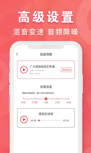 3、集成基础音频编辑工具,支持剪辑、合并、混音等操作。可对音频进行裁剪或拼接,也可将录音与音乐文件合成处理。