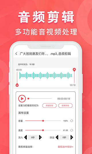 4、包含铃声制作功能,可自定义裁剪音频片段作为手机铃声。支持设置淡入淡出效果,让铃声过渡更加自然。