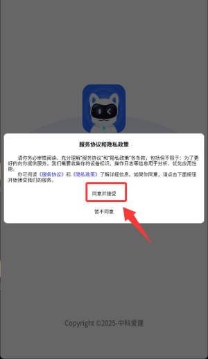1、初次启动应用时,需阅读并同意用户服务协议及隐私条款,点击确认后进入主界面。