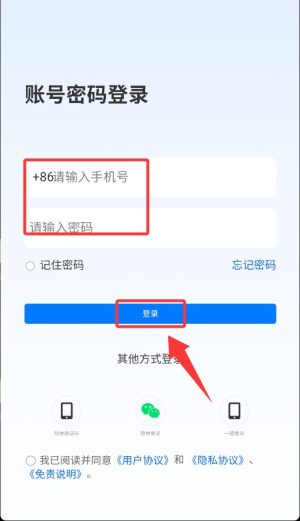 3、输入注册时绑定的手机号码与对应密码,完成身份信息校验。