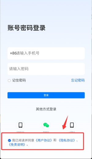 2、在登录页面选择手机号密码登录方式,进入账号验证界面填写信息。