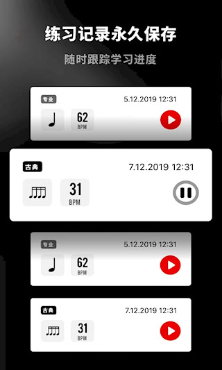 2、自动保存每次节拍训练的历史记录,包括使用时间与设定速度。便于回顾过往练习进度,实现连续性的学习轨迹追踪。