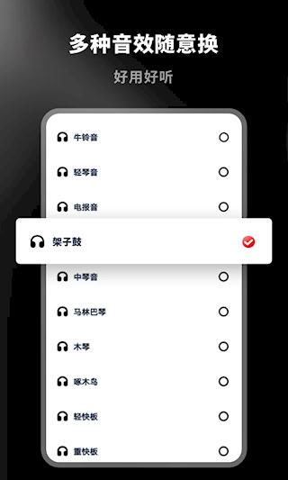 4、架子鼓节拍器内置多种特色音效,涵盖机械声、电子音、打击乐等不同风格。可根据练习曲目或个人偏好自由切换,增加练习趣味性。