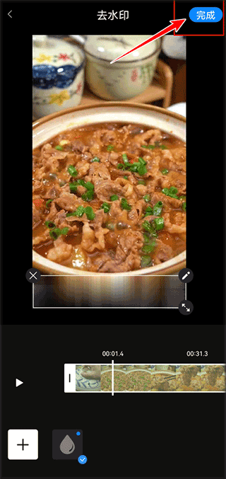 5、确认所有水印均已妥善遮挡后,点击右上角【完成】按钮,系统将自动处理并导出无水印视频。