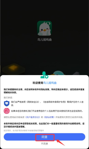 1、初次启动应用时,需阅读并同意用户服务协议及隐私条款,点击确认后进入主界面。