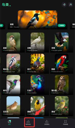 2、主页面展示多种鸟类主题音乐模块,点击即可进入对应演奏界面。
