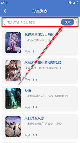 2、在搜索框内输入作品名称或作者等关键词,即可快速查找目标书籍。