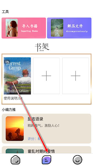 5、返回主界面后切换至功能板块,可见本地书籍导入、文件解压等实用工具,可根据实际需求选择使用。
