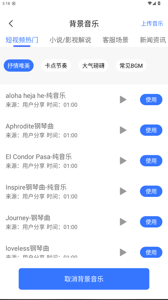 3、优质文案与背景音:内置海量样音模板文案与优质背景音库,可实现文案与背景音的完美搭配,减少创作难度。