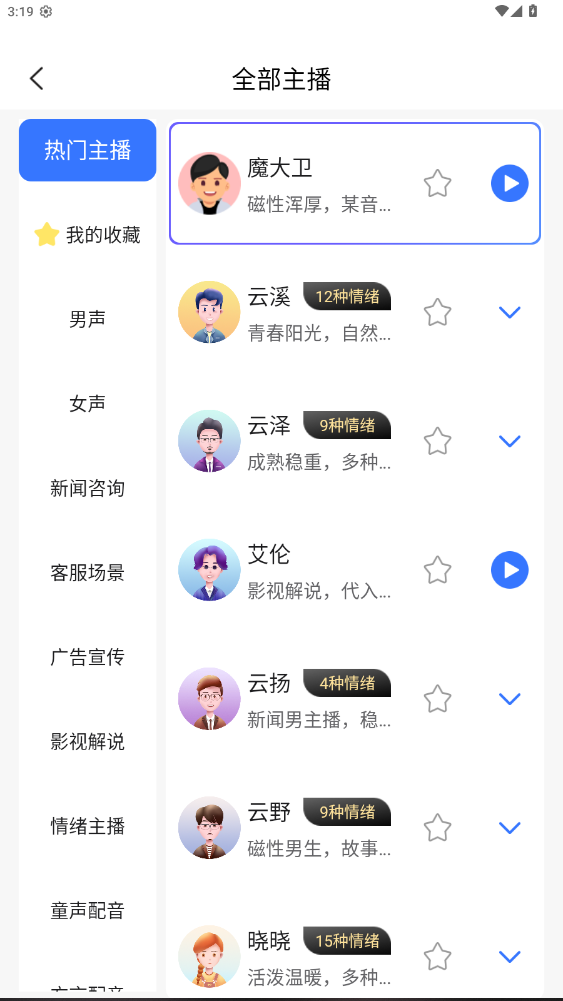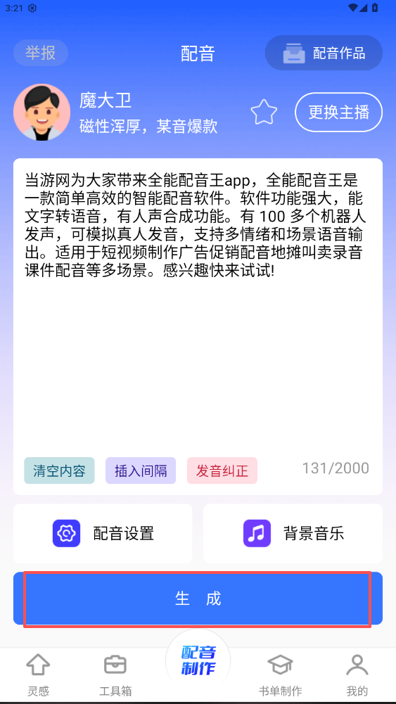 1、专业配音服务:提供专业级配音功能,线上有多种风格的语音可供尝试,满足不同场景的专业需求。
