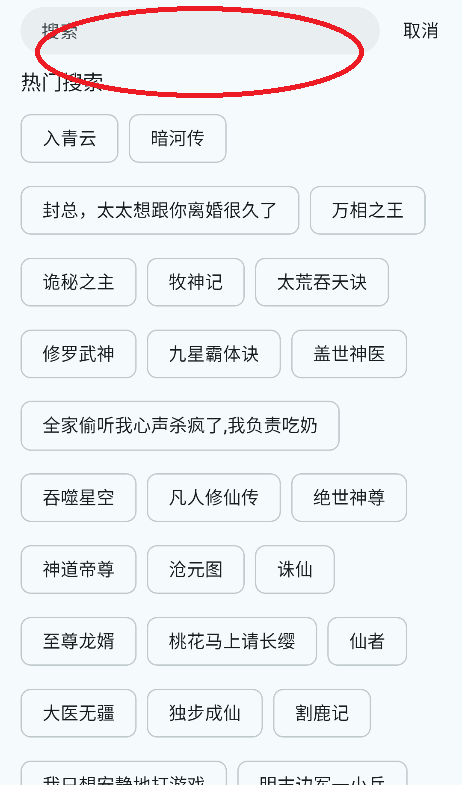 点击搜索栏,输入书名或作者名即可查找书籍。