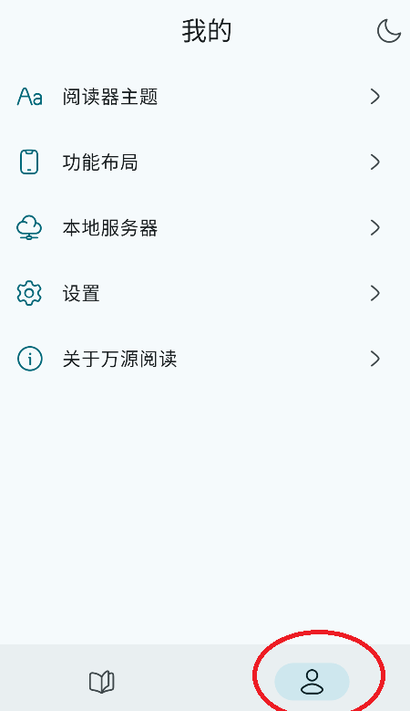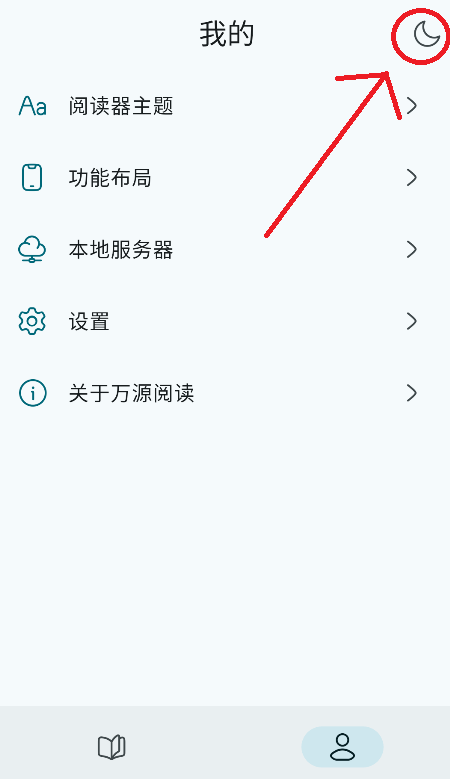 1、在"我的"页面右上角有一个小月亮标识,现在是白天模式。