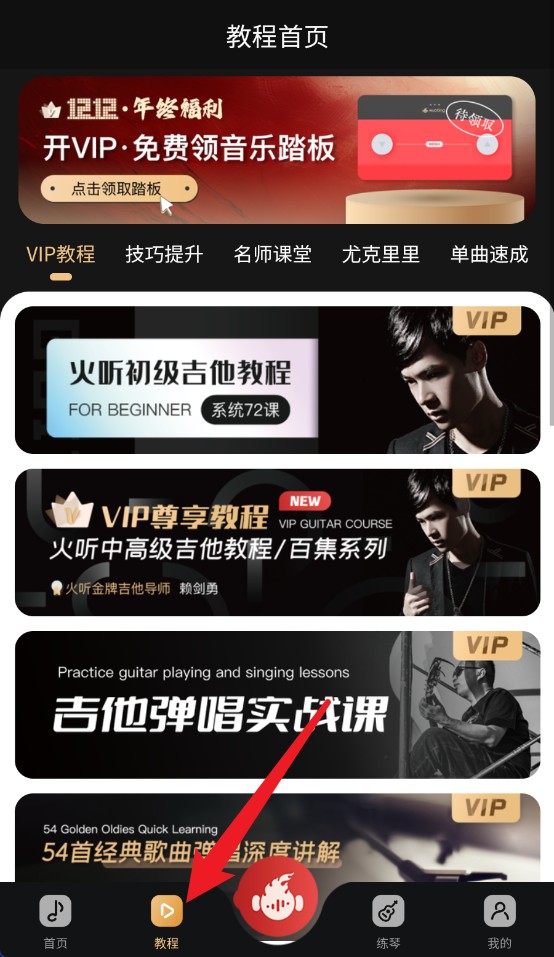 3、点击底部教程栏目入口,进入分级教学页面。内容按难度划分为初级、进阶与会员专享等不同层级,方便按需选择。