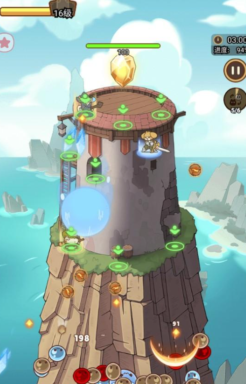 3、战斗操作:手动释放猫咪大招,把握时机,如敌人密集时用范围伤害技能,关键时刻用控制技能保护水晶。
