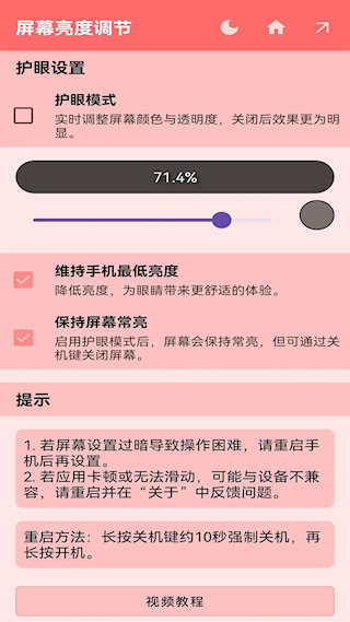 1、其亮度调节范围远超系统自带功能,支持在极暗环境下将背光降至近乎关闭状态。这种精细调控能力特别适合夜间阅读或婴儿哺乳等需微光场景,避免强光刺激。