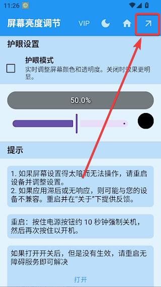 1、打开屏幕亮度调节APP,点击图中所示位置