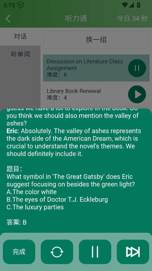 1、支持音频变速播放与循环听写,适配不同听力训练节奏需求。