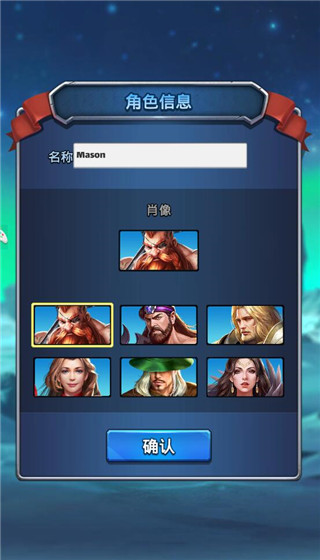1、进入游戏后,先从可选角色中挑选一个,再为其设置一个游戏名称。