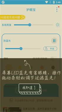 护眼宝精简版能过滤智能设备屏幕发出的短波蓝光。应用通过调节屏幕色温,有效降低进入眼睛的蓝光强度。提供从轻度到深度的多级过滤调节杆,可根据环境光线的变化手动控制过滤程度,对于眼睛需要长时间看屏幕的使用者来说,有一定缓解作用,有需要的小伙伴可以点击下载。