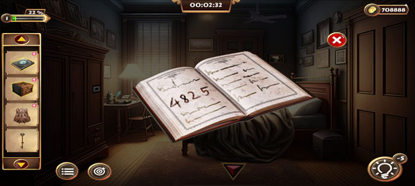 7、卧室床头的盒子,可通过阅读卧室中找到的书,从中获取对应密码来打开。