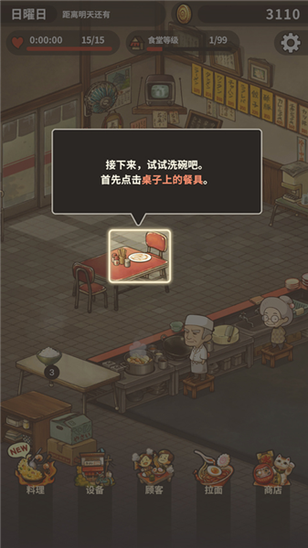 5、顾客在吃时还可点击屏幕加快速度,顾客吃完后,收拾餐具,然后洗碗,即可结束新手教程。