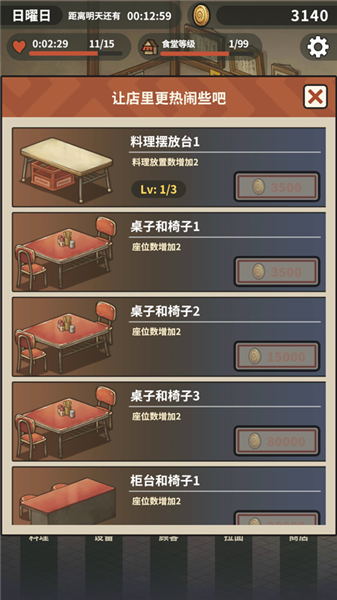 6、还可通过赚取的金币来升级拉面食堂的设备,以此来容纳更多的客人。