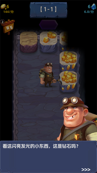 1、核心玩法围绕放置挖矿展开,主要采集目标为黄金与钻石,积累资源推动发展。