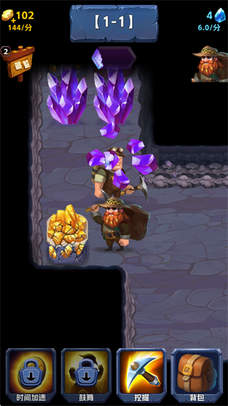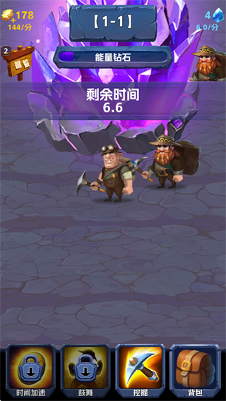 4、游戏内置挑战副本,需在规定时间内挖完能量钻石,完成后可获取大量奖励。