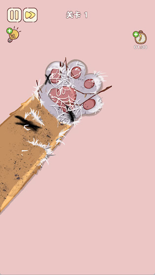 1、进入游戏后,把猫爪上的蜘蛛网等杂物拿开