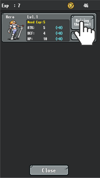 3、获得经验后点击【Raisingthelevel】按钮提升角色等级增强属性。