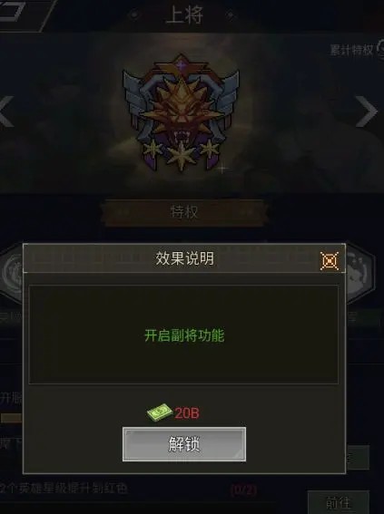21、副将页签:副将功能需军衔达到上将后,激活副将特权方可开启。