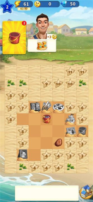 1、匹配相同对象进行升级,解锁越来越多的物品,为建设旅途提供支持。