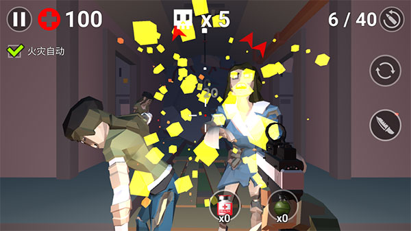 3、将视角瞄准僵尸,系统会自动触发攻击机制,无需手动点击攻击按钮。