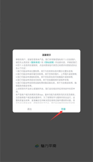 1、初次启动应用时,需阅读并同意用户服务协议及隐私条款,点击确认后进入主界面。
