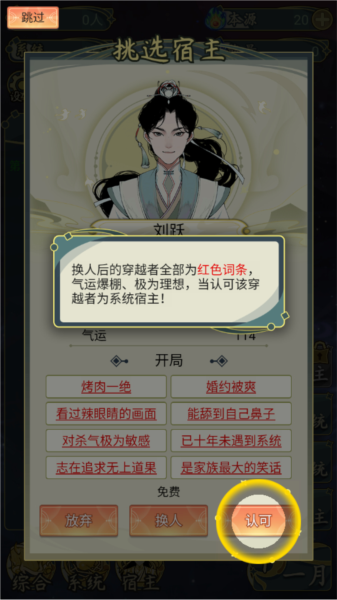4、进入位面世界后,可以挑选宿主