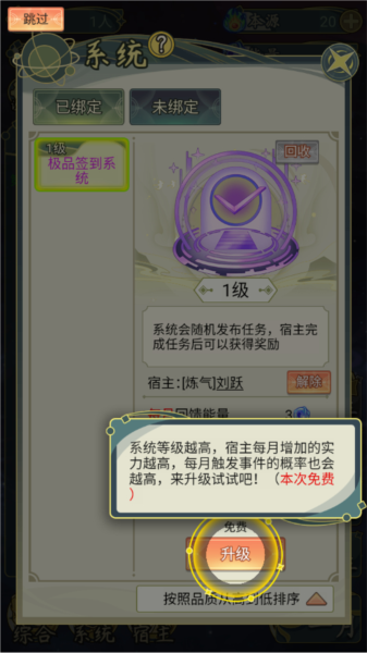 5、一键绑定会将高品质高等级的系统优先分配给高综合实力高气运的宿主