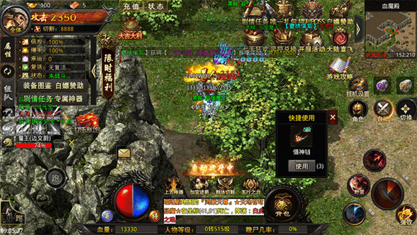 2、野外全地图支持任意 PK,搭配多重助战模式,战斗中会掉落宝石、整件装备;完成卫道除魔任务、守护英雄经验副本可获大量经验。