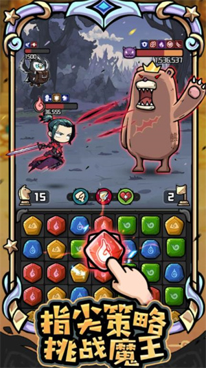 基础消除: 普通三消会为你对应的英雄积攒能量(或直接造成伤害),当能量槽满后,英雄会自动释放强大的必杀技。
