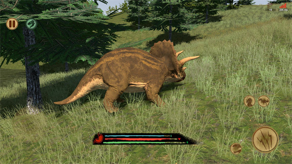 4、正式游玩时,屏幕左边控制恐龙移动,右边为攻击、奔跑、休息、喊叫按钮。