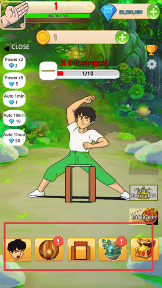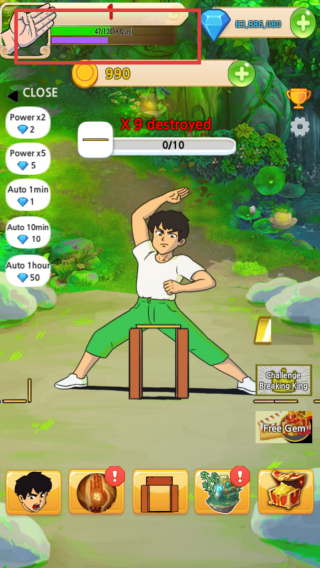 3、从一层木砖开始挑战,劈断后解锁二层木砖,难度逐步提升。