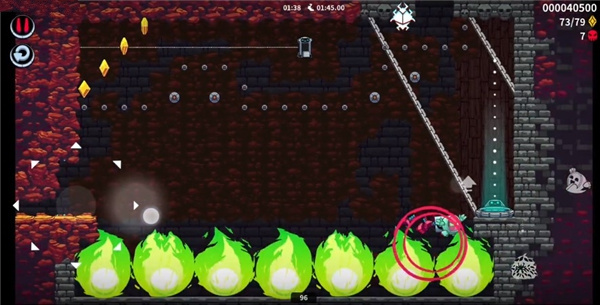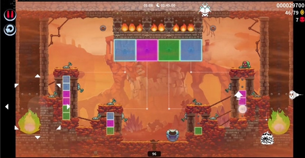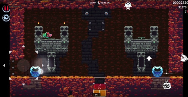 2、进入关卡后,跳跃至右上角位置获取技能道具,再从中央区域上升至上一层。
