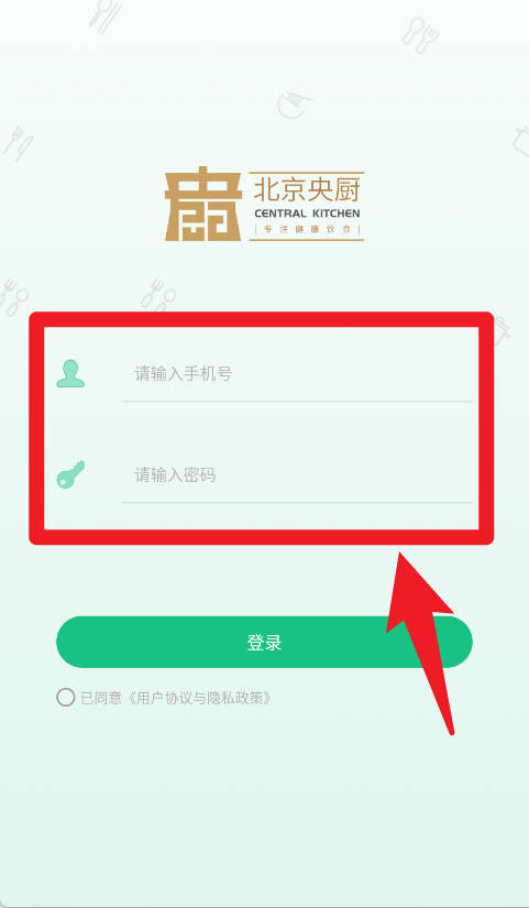2、在登录界面输入手机号和密码,点击登录按钮,即可进入系统使用各项餐饮功能。