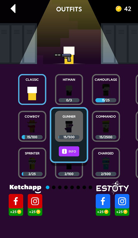 神枪手先生是一款动作射击像素闯关游戏,整体游戏画风十分复古细腻,融入了不同难度的关卡自由挑选,将通过收集各种武器、枪支弹药装备本身,操控角色在关卡中灵活奔跑、跳跃、走位等躲避障碍物与陷阱,精准扫射将敌军全部击败,感兴趣的玩家千万不要错过怕哦!