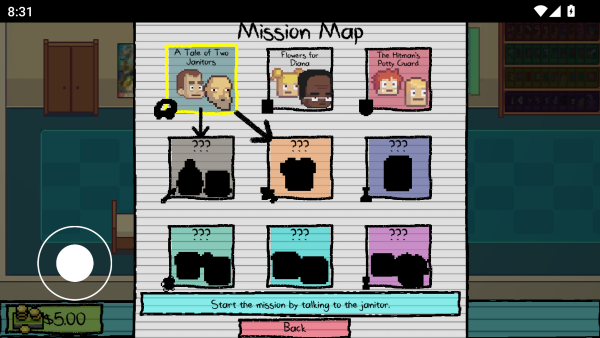 4、午餐时段:卖掉小校长的通行证,能得四块或五块,之后一路返回教室,将 “心” 变现即可获取钱财。